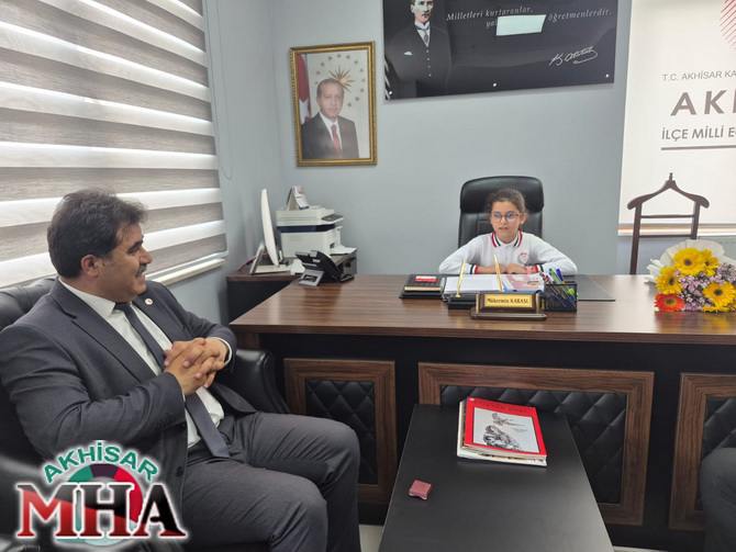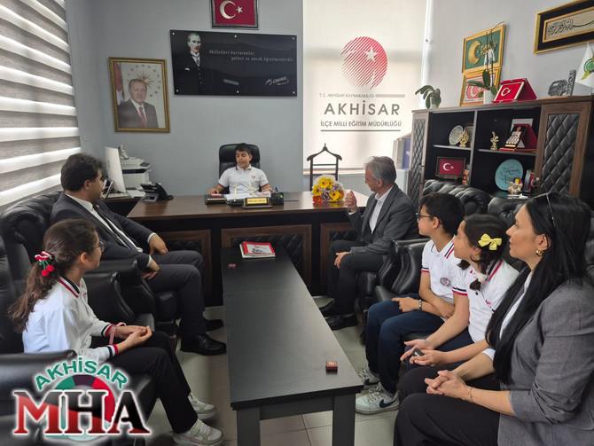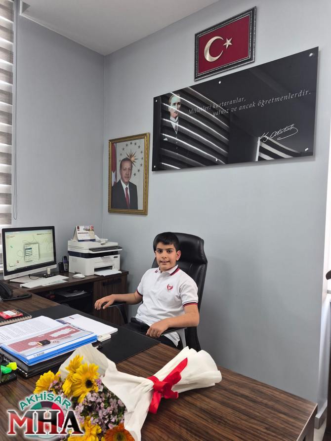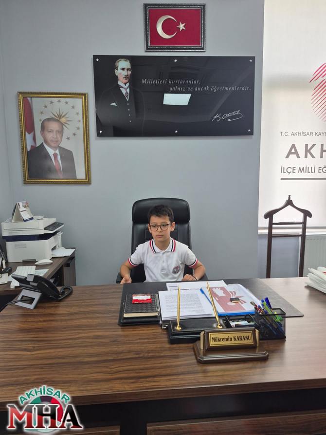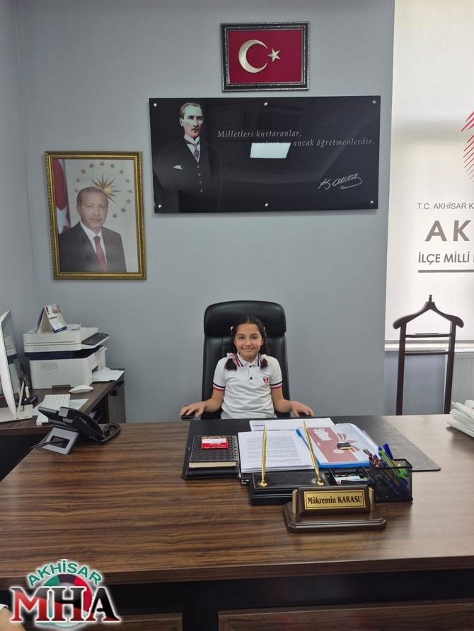 Akhisar Kaymakamı Mustafa Can’ın makam koltuğuna Zübeyde Hanım İlkokulu öğrencisi otururken, İlçe Milli Eğitim Müdürü Mükremin Karasu’nun koltuğu ise Namık Oğul İlkokulu öğrencilerine emanet edildi.