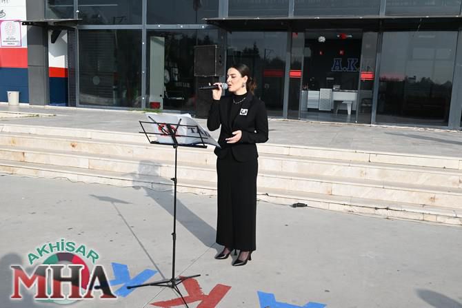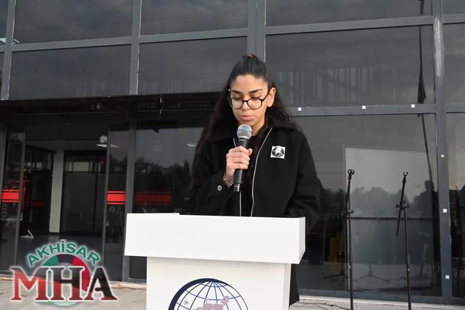 Anma töreninin açılış konuşmasını Akhisar Akademi Kültür Koleji Genel Müdürü Arif Zor gerçekleştirdi. Zor konuşmasında, "Türkiye Cumhuriyeti Devleti'nin kurucusu Gazi Mustafa Kemal Atatürk’ün aramızdan ayrılışının 87. yılındayız. 10 Kasımlar, Mustafa Kemal’in 57 yıllık hayatını, mücadelesini, milletimize kazandırdıkları ve kazandırmak istediklerini doğru anlama bakımından önemlidir. Bu anlamda Mustafa Kemal’in bize ve ülkemize kazandırdıklarının ardından onu saygı,sevgi ve özlemle anıyoruz.” ifadelerini kullandı. Sayın Zor, Atatürk'ün Türk Milleti için yaptıklarını ve ülkeyi muasır medeniyetler seviyesine çıkarma vizyonunu vurguladı.