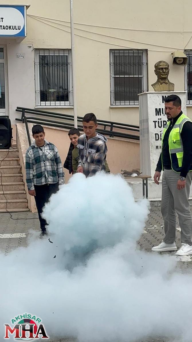 Akhisar Aktif Ortak Sağlık Güvenlik Birimi tarafından yürütülen tatbikatlarda, öğrenci ve öğretmenlere olası acil durumlarda doğru hareket etme yöntemleri uygulamalı olarak gösterildi. Senaryo gereği gerçekleştirilen tatbikatlarda, yangın anında tahliye süreçleri, güvenli toplanma alanlarına yönlendirme ve arama kurtarma faaliyetleri detaylı şekilde uygulandı.