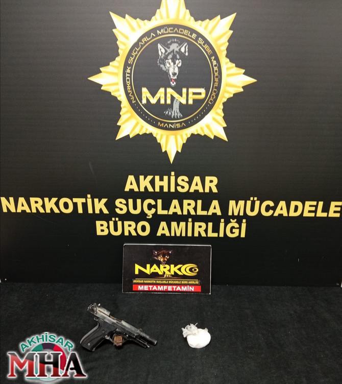 Gerçekleştirilen aramalarda;198,74 gram metamfetamin,16,7 gram bonzai,15 adet sentetik ecza hap,1 adet ruhsatsız tabanca ele geçirildi.