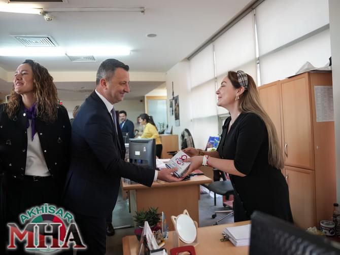 Akhisar Belediye Başkanı Ekrem Kayserili, 8 Mart Dünya Emekçi Kadınlar Günü münasebetiyle belediyede görev yapan kadın personeli ziyaret ederek günlerini tebrik etti. Başkan Kayserili, belediye birimlerini tek tek gezerek kadın çalışanlarla bir araya geldi ve onların emeklerinden dolayı şükranlarını sundu.