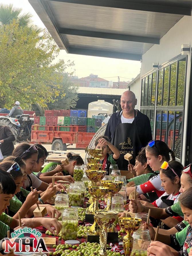 Akhisar İlçe Spor Kulübü Bisiklet Sporcuları hasat etkinliğine bisikletleri ile gelerek yeşil zeytinleri minik elleriyle tek tek kırdı. “En çok kim kıracak?” yarışması ise renkli görüntülere sahne oldu. Akhisar Ticaret Borsası Başkanı Alper Alhat, tüm kuruluşları “Kalp Kırma Zeytin Kır” etkinliklerine desteğe davet ederek “Türkiye genelinde çocuklar ve aileleri ile zeytin kırma etkinlikleri düzenlenmeli. Amaç, yalnızca sofralara değil, yeni nesillerin kalbine zeytini taşımak. Minik eller zeytinle buluşsun, sofralar bereketle dolsun. Haydi Türkiye, zeytin kır! Anaokullarında, okullarda, parklarda zeytin kırma etkinliklerinde çocuklar zeytine dokunsun, evler yeniden şifa bulsun” diye konuştu. Alhat, zeytin kırma şampiyonası için de rakipleri beklediklerini söyledi.