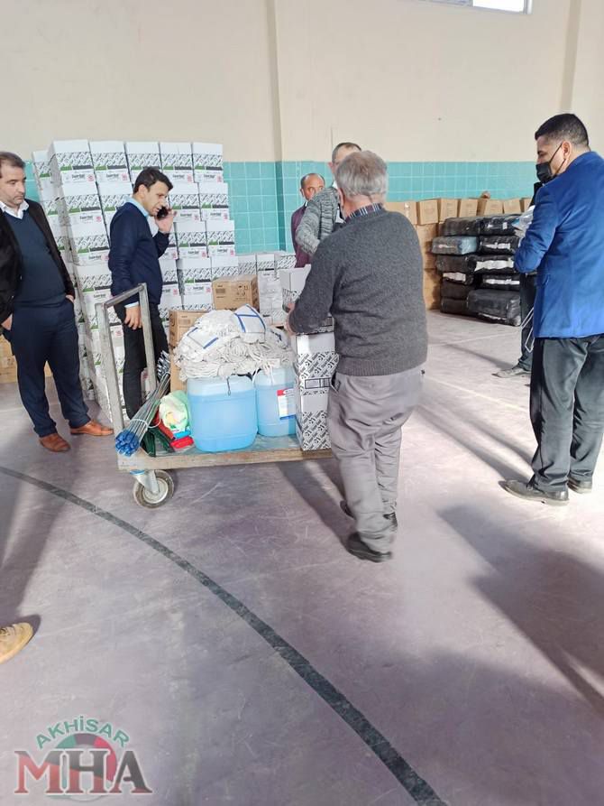 Akhisar İlçe Milli Eğitim Müdürü Süleyman ERDEM “ Bu yıl eğitim öğretim süreci başladığı andan itibaren okullarımıza, kurumlarımıza üçüncü kez temizlik , mal ve malzeme dağıtımı gerçekleştiriyoruz. Okul ve kurumlarımızın daha temiz ve sağlıklı bir ortamda eğitim öğretime devam etmeleri için Bakanlığımız her türlü desteği veriyor. Şu ana kadar sadece anaokulu, ilkokulu ve ortaokullarımıza 351.700,00 tl lik temizlik mal ve malzemesi alımı gerçekleştirilmiştir. Diğer kurumlarımızın da ayrıca ödenekler gönderiliyor. Bunun yanında yine anaokulları, ilkokul ve ortaokullarımıza 126.200,00 tl kadar kırtasiye desteğinde bulunuldu. Her mahallede bir anasınıfı sloganıyla çıkılan yolda da anasınıfı yapımlarında kullanılmak üzere boya, laminant, parke, elektrik malzemeleri için 88.000,00 tl kadar yapım onarım, mal ve malzeme desteğinde bulunuldu.