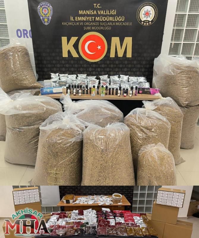 Manisa Emniyet Müdürlüğü Kaçakçılık ve Organize Suçlarla Mücadele Şube Müdürlüğü ekiplerince tütün ve tütün mamulleri kaçakçılığının önlenmesine yönelik yürütülen çalışmalar kapsamında Turgutlu, Kırkağaç ve Akhisar ilçelerinde operasyon gerçekleştirildi.