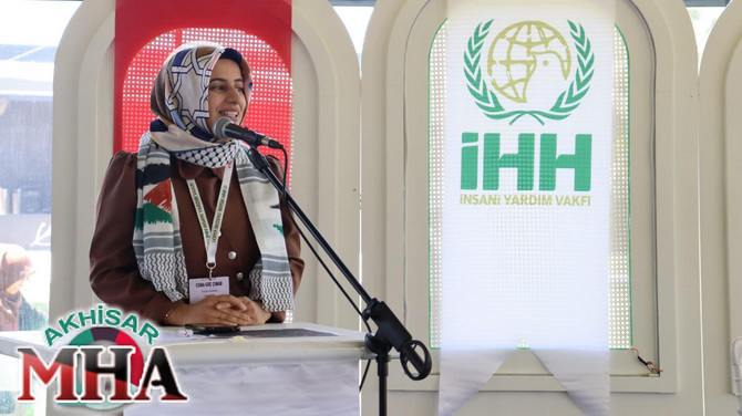 Programda konuşmacı olarak yer alan İHH Hatibe programı mezunu Kadriye Ünsal, vakfın Filistin başta olmak üzere dünyanın çeşitli bölgelerindeki insani yardım çalışmalarına dair bilgi verdi. İHH bölge koordinatörü Ramazan Erdoğan ise Sumud Filosu'nun bölgesel ve küresel önemine değindi. İHH Akhisar Dernek Başkanı İsmail Akbaş da konuşmasında, Akhisar halkının duyarlılığına teşekkür ederek, desteklerin artarak devam edeceğini ifade etti. İHH Akhisar Kadın Başkanı Esma Güç Çınar ise Gazze'deki insani kriz karşısında kadınların sorumluluğuna vurgu yaparak Filistin halkına destek çağrısında bulundu.