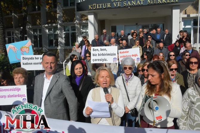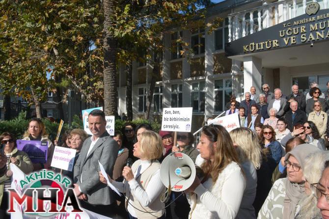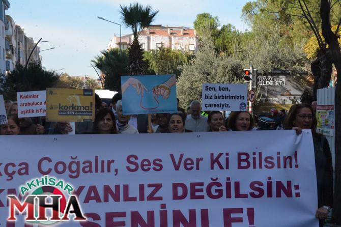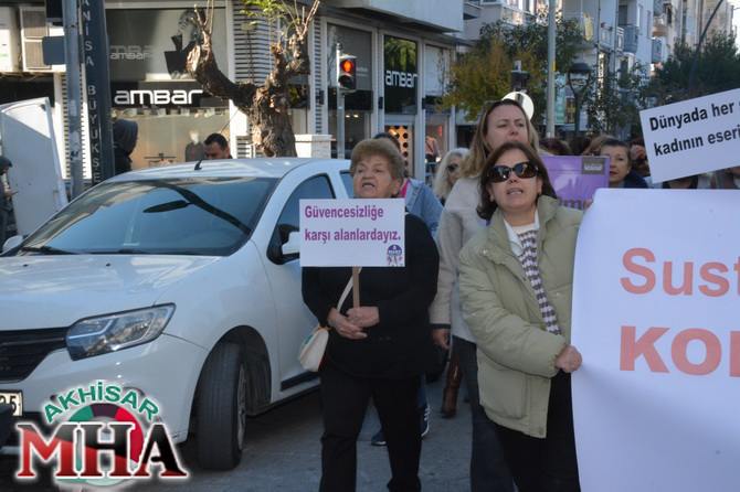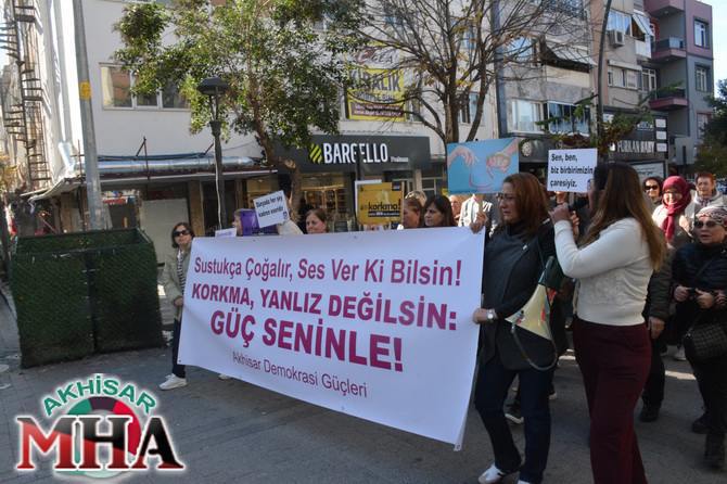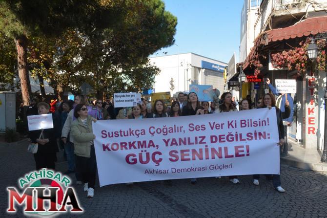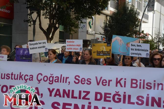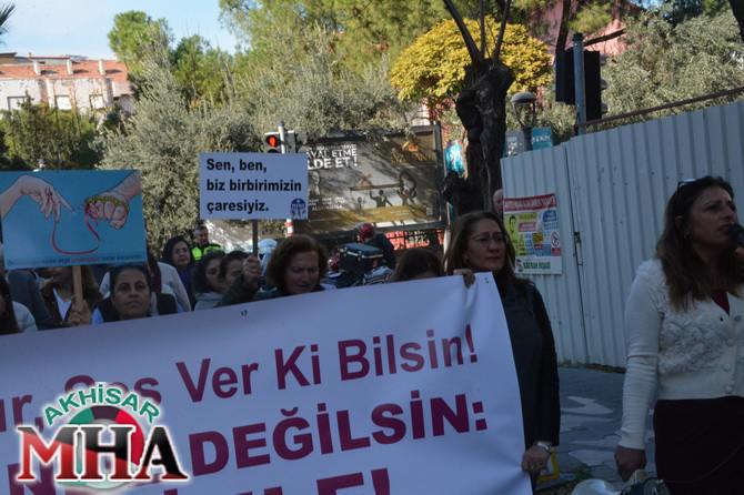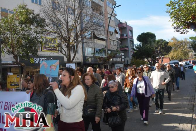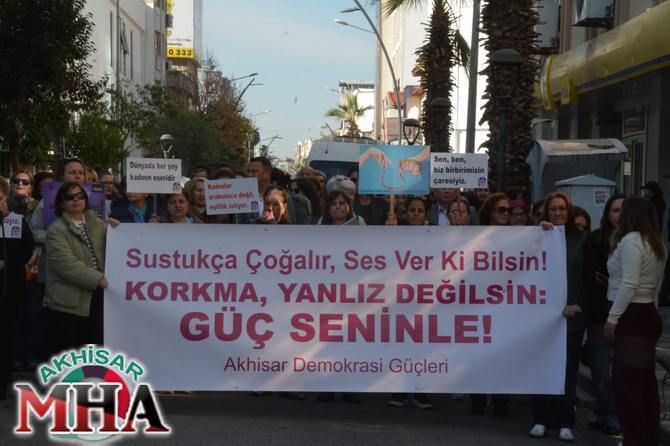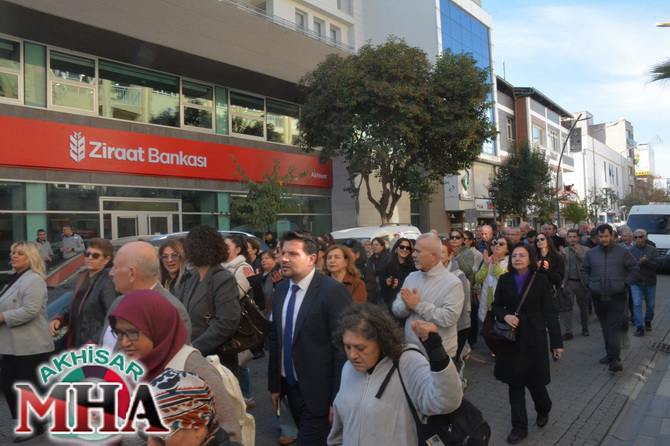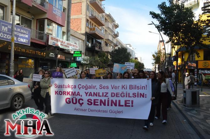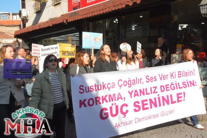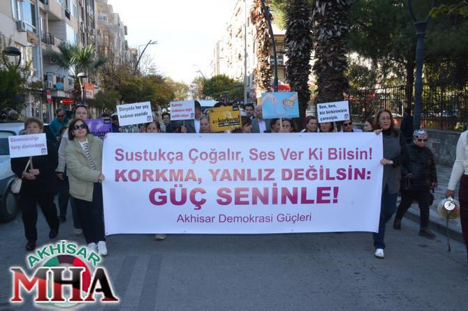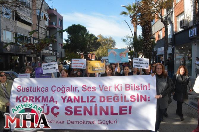 Akhisar Demokrasi Güçleri, 25 Kasım Kadına Yönelik Şiddete Karşı Uluslararası Mücadele Günü kapsamında saat 12.00’de Tahir Ün Caddesi’nden başlayarak Uğur Mumcu Kültür Merkezi önüne kadar yürüyüş gerçekleştirdi.