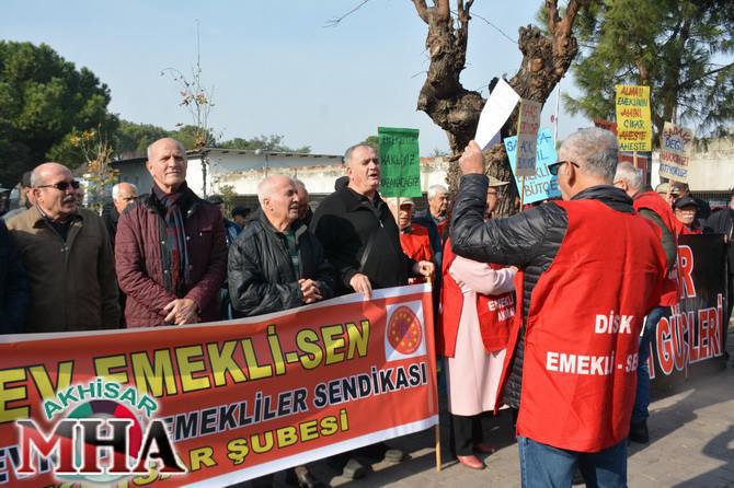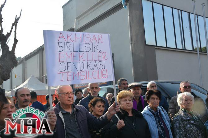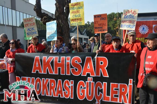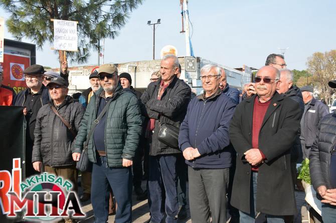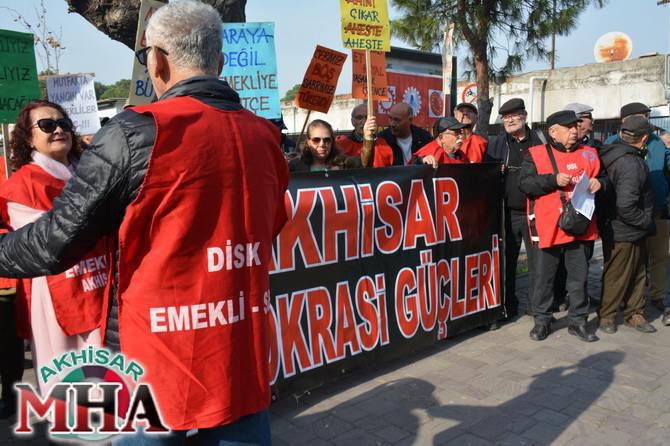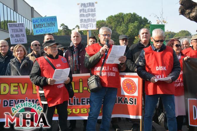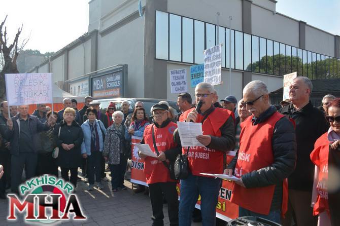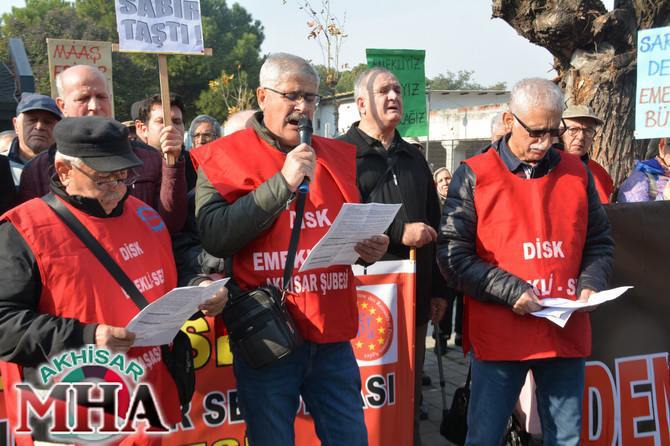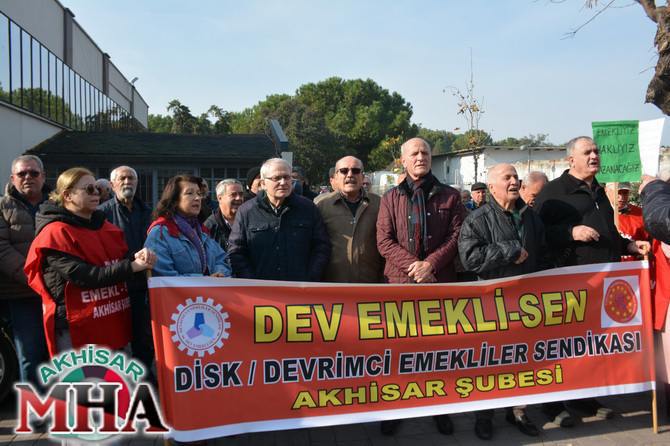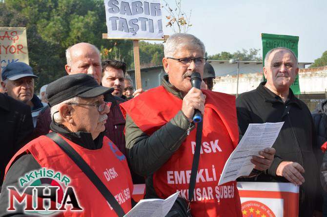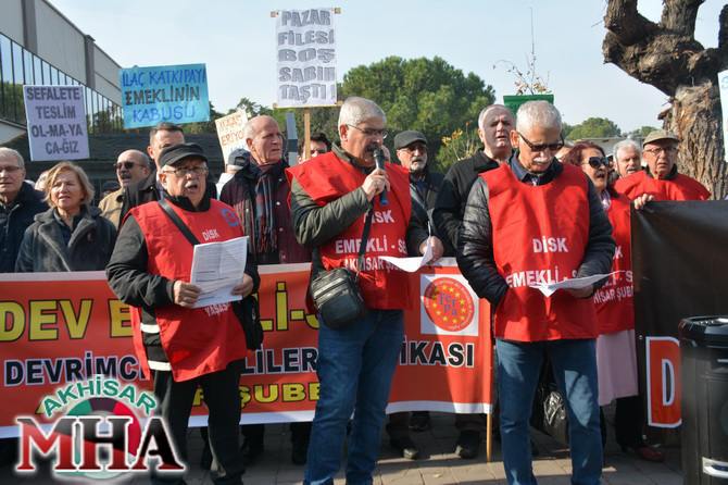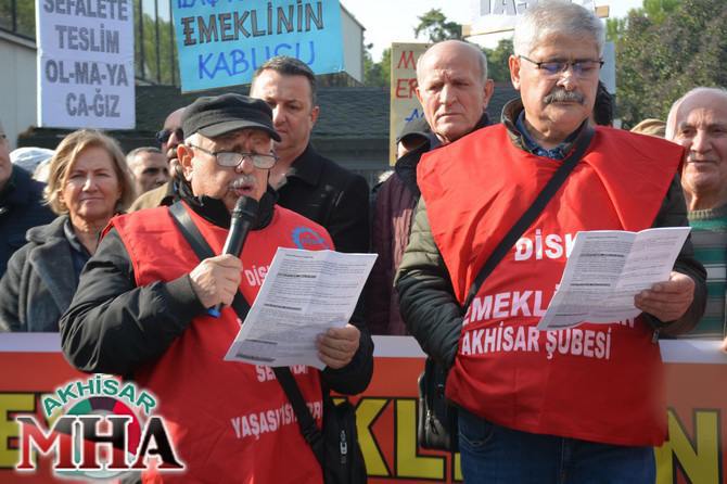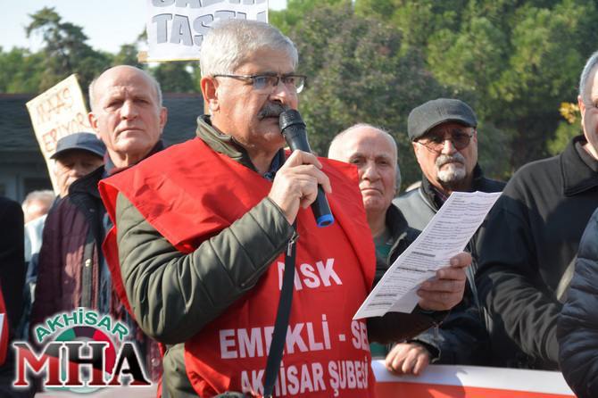 Basın açıklaması, DİSK’e bağlı Devrimci Emekliler Sendikası Akhisar Şube Başkanı Turgay Kanat ile Şube Sekreteri Mustafa Burgurcu tarafından okundu.