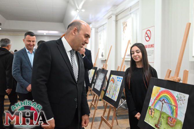 Programın sonunda, okulun Görsel Sanatlar Öğretmeni Sevgi Dalda rehberliğinde öğrencilerin hazırladığı resim sergisi, Akhisar protokolü tarafından Kaymakam Mustafa Can öncülüğünde gezildi.