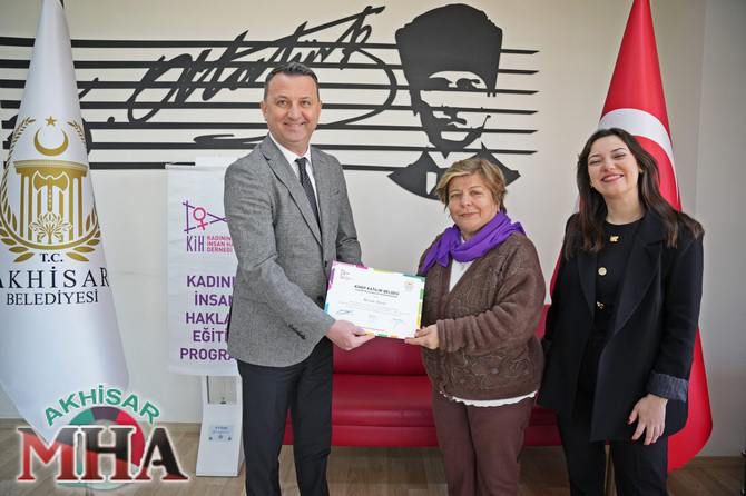 Akhisar Belediyesi ile Kadının İnsan Hakları Derneği iş birliğinde düzenlenen Kadının İnsan Hakları Eğitim Programı’nı (KİHEP) tamamlayan kadın muhtarlara belgeleri takdim edildi.