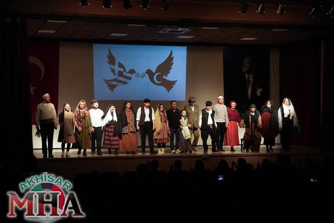 Akhisar Belediye Başkan Yardımcısı Emre Okkalı ve Serdivan Mübadilleri Derneği Temsilciliği Başkanı Hakan Taşçı'nın da katılım gösterdiği etkinlik, mübadele sürecinde yaşanan insan hikayelerini etkileyici bir şekilde sahneye yansıtarak, o dönemin zorluklarını ve umutlarını günümüze taşıdı. Oyun, mübadeleyle yerlerinden yurtlarından koparılan insanların yaşadığı acıları, kayıpları ve yeni bir hayata tutunma çabalarını dokunaklı bir dille anlatarak, izleyicileri adeta o günlere götürdü.