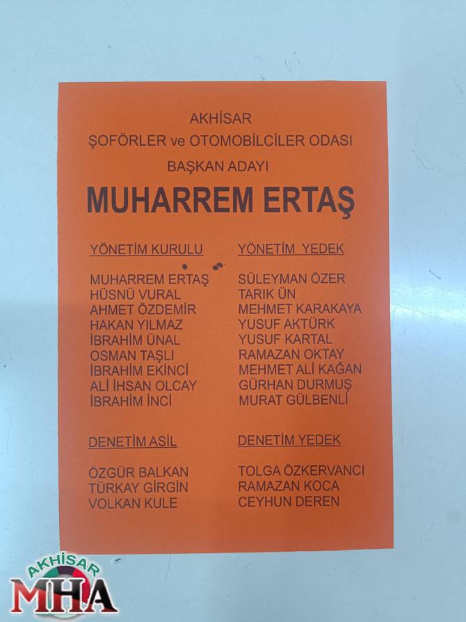 Akhisar Şoförler ve Otomobilciler Odası Başkan Adayı Muharrem Ertaş, yaklaşan oda seçimleri öncesinde oluşturduğu yönetim ve denetim kurulu listelerini basın mensuplarıyla paylaştı. Düzenlenen tanıtımda Ertaş, güçlü ve tecrübeli bir ekip ile yola çıktıklarını vurguladı.