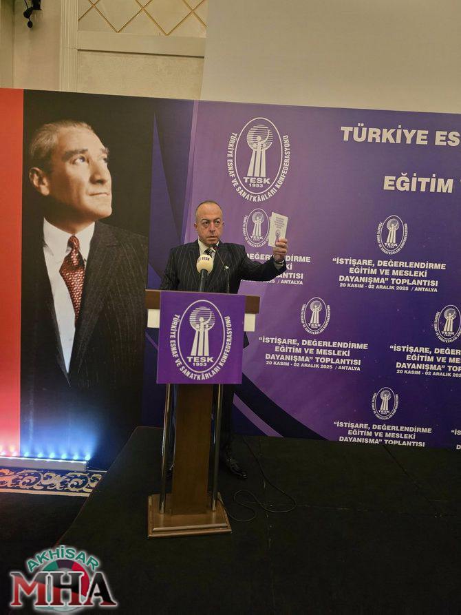 Türkiye Esnaf ve Sanatkârlar Konfederasyonu (TESK) tarafından Antalya’da düzenlenen İstişare, Değerlendirme, Eğitim ve Mesleki Dayanışma Toplantısı geniş katılımla gerçekleştirildi. Toplantıya Pazarcılar Federasyonunu temsilen katılan Akhisar Manavlar ve Pazarcılar Esnaf Odası yetkilileri, pazarcı esnafının sorun, talep ve çözüm önerilerini ilgili makamlara aktardı.